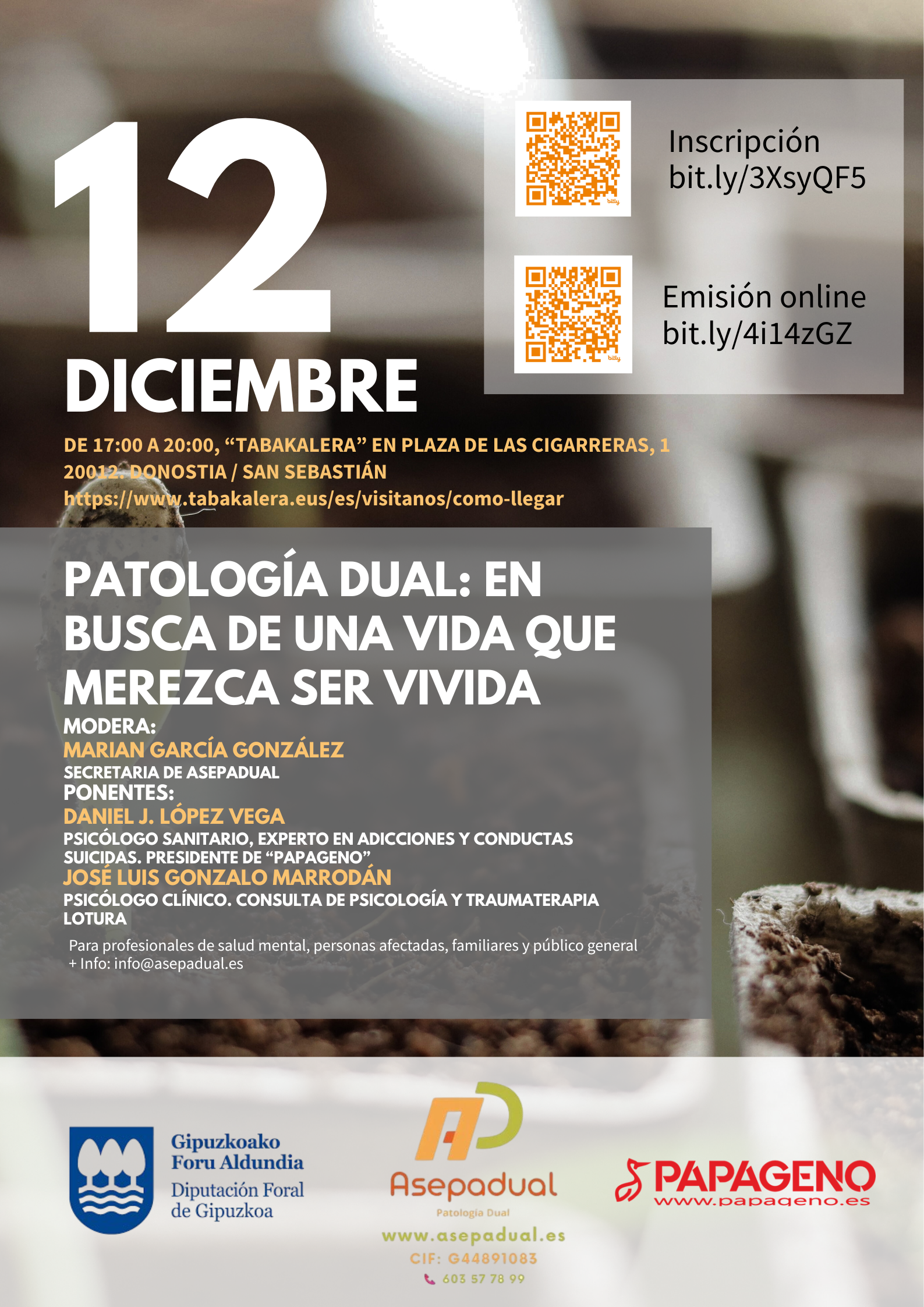 El próximo 12 de diciembre, de 17:00 a 20:00, el centro cultural Tabakalera (Plaza de las Cigarreras, 1 · Donostia / San Sebastián) será el escenario de una jornada dedicada a comprender y abordar la patología dual, una condición que combina simultáneamente un trastorno mental y un trastorno por uso de sustancias. Este encuentro busca ofrecer una mirada profunda, humana y actualizada sobre esta realidad compleja.